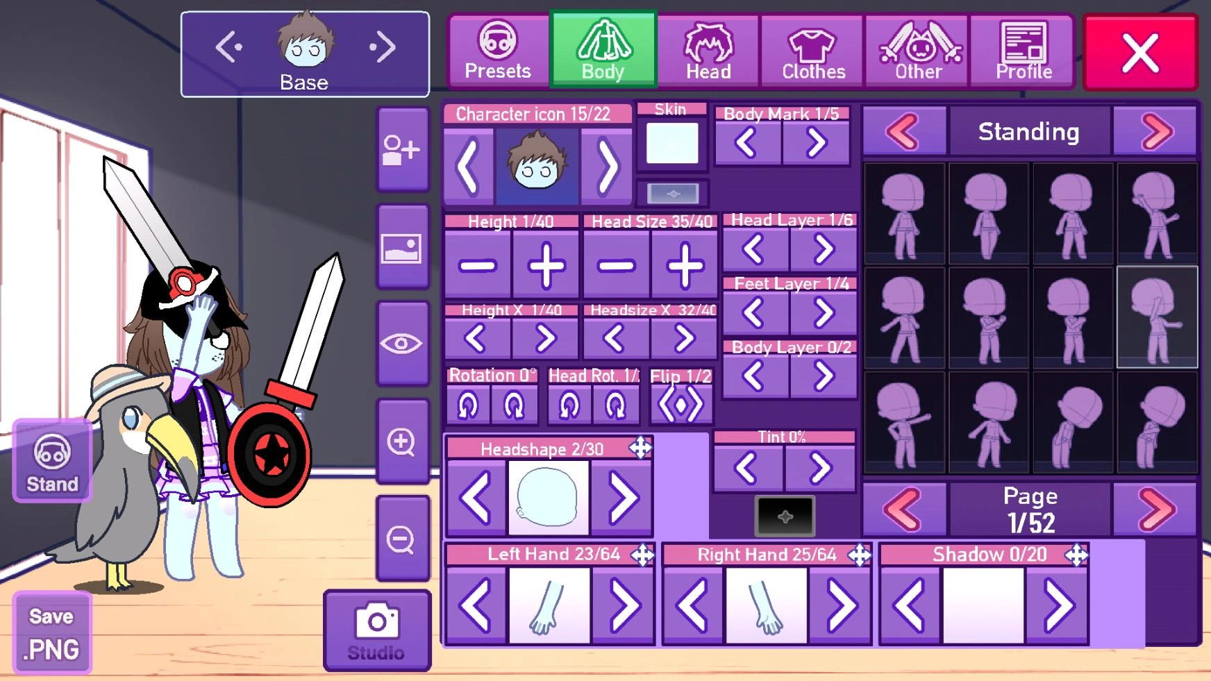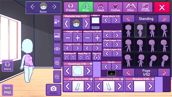 3、点击body可以自己定制角色的体型。