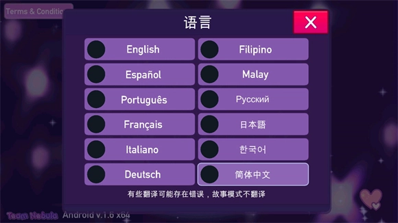 2、接着点击简体中文选项,就能把游戏切换成中文版了。不过需要注意的是,游戏的中文翻译或许存在一些问题,可能会导致汉字无法正常显示,建议谨慎选择使用。