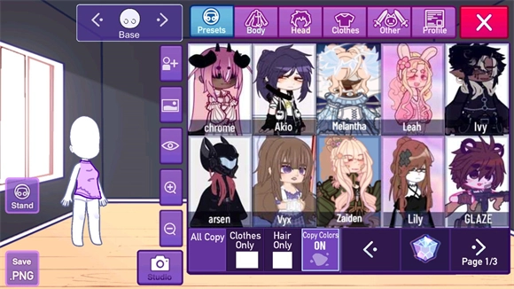 2、进入游戏后,点击左侧的presets按钮,即可选择已制作完成的角色。