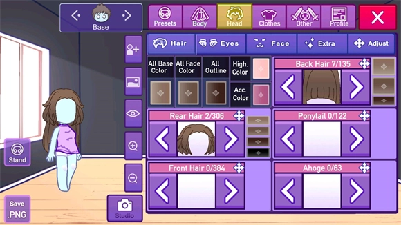 4、点击head可以更换角色的发型和颜色。