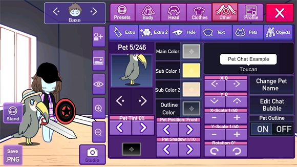 7、点击pats能更换不同的宠物。