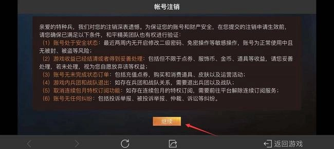 3、进去之后点击继续然后点确认就可以注销了。