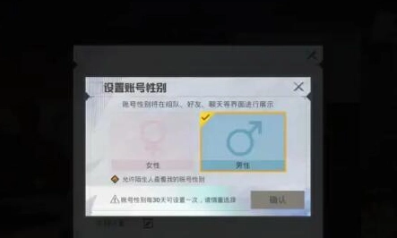 3、资料的性别每三十天可设置一次。