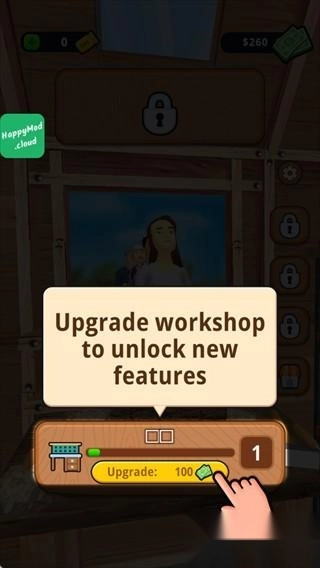 消耗100金币升级工坊,解锁更多制作工具与装饰功能,为后续复杂作品做准备。