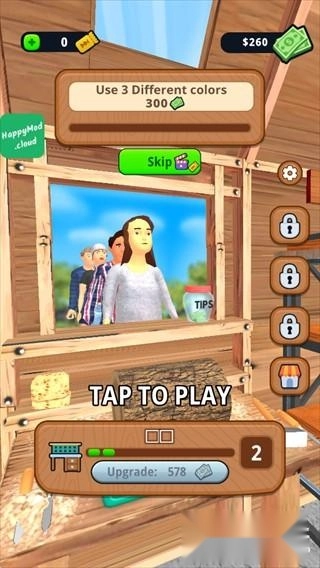 3、多样的关卡挑战,每一关都设置了不同的目标,你也能自由发挥创意,尽情削木头