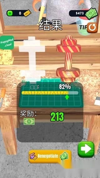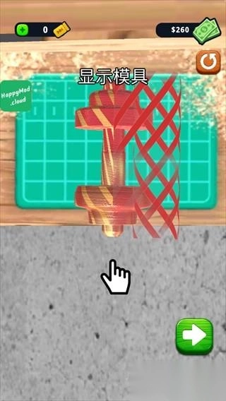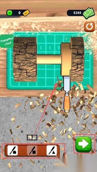 3、丰富的关卡挑战,每一关都有不同的要求,你也可以自由的发挥,进行削木头。