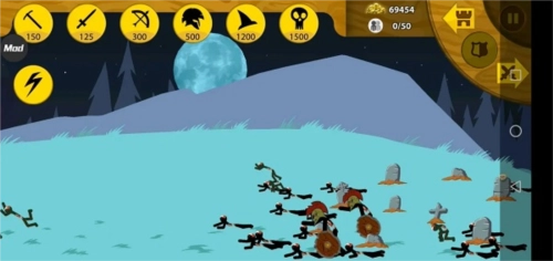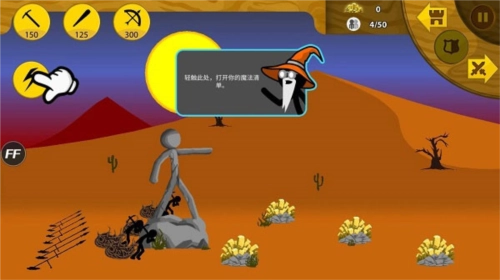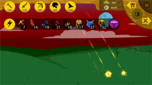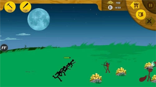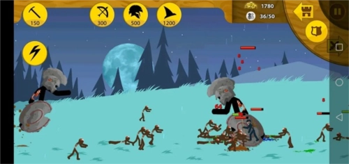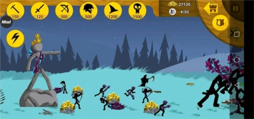 1、有足够的矿石,就能点击攻击类的火柴人,派遣它们去摧毁敌人的基地。
