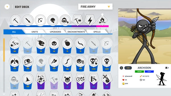 :角色设计简单,虽然是火柴人造型,角色特征鲜明,可以控制自己想要的军队,在不同地图与敌人展开策略对战。