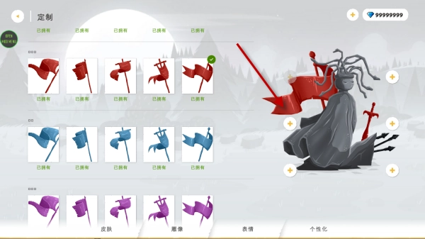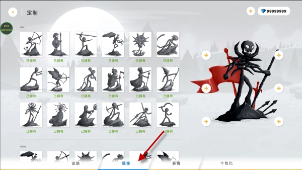 2、进去之后点击雕像界面,选择一个喜欢的雕像形象。