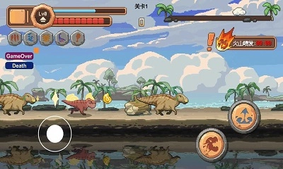 游戏场景丰富多变:从丛林密布的远古世界到火山喷发的险恶地带,游戏打造了多张极具视觉冲击力与探索乐趣的关卡地图,让每一次闯关都充满新鲜体验。