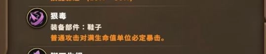 鞋子方面,游侠的选择很明确,必须是【暴击概率鞋子】——52级的荒原血足排第二,72级的夜行者是最优。要选纯敏捷属性的暴击鞋,附魔优先攻速与真实伤害,符文镶嵌神圣符文,强化也选攻速和真实伤害,威能则搭配+2、+3技能的。