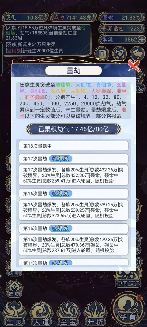 宇宙中存在一种周期性的大变动,它会使部分生灵获得境界跃升的契机,同时也会导致同等比例的生命走向终结。好在逝去的生命能通过某种循环机制重新归来,因此维持这种循环的法则对所有生灵而言都至关重要。