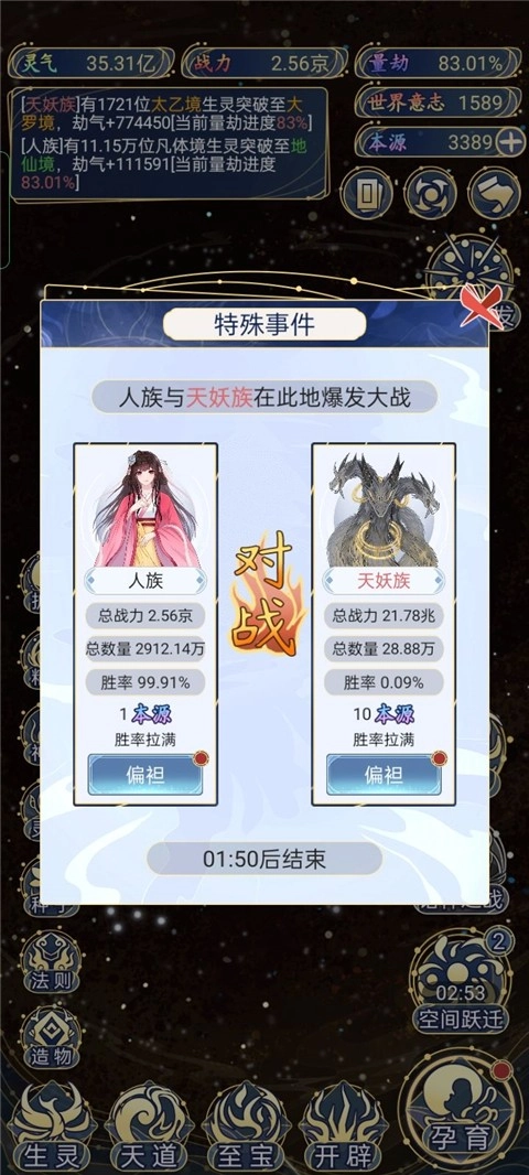 神战能让我们获取大量人口,冷却时间为5分钟一次,一小时就能得到几百万人口,不过没办法用时间大法来重置冷却时间。