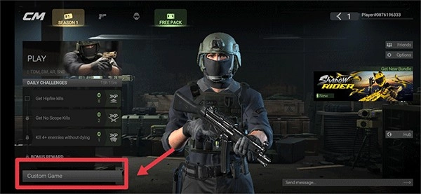 当好友添加成功后,请返回游戏主界面,随后点击左下角的“custom game”(自定义游戏)选项。