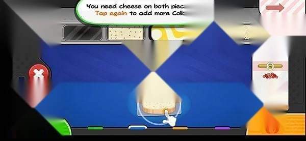 选好所需的食物后,点击面包片,对应的食物就会自动放到面包上,最后点击右下方的按钮就能完成三明治的制作了。