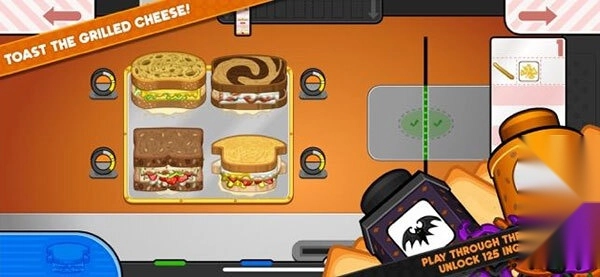玩家得学会制作三明治的各类技能,像切食材、搭配配料、烘烤面包之类的都得掌握。
