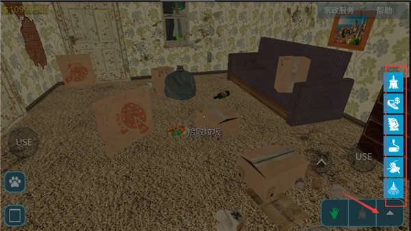 成功进入房间后,点击右下角的这个图标,就能使用道具清理垃圾了。