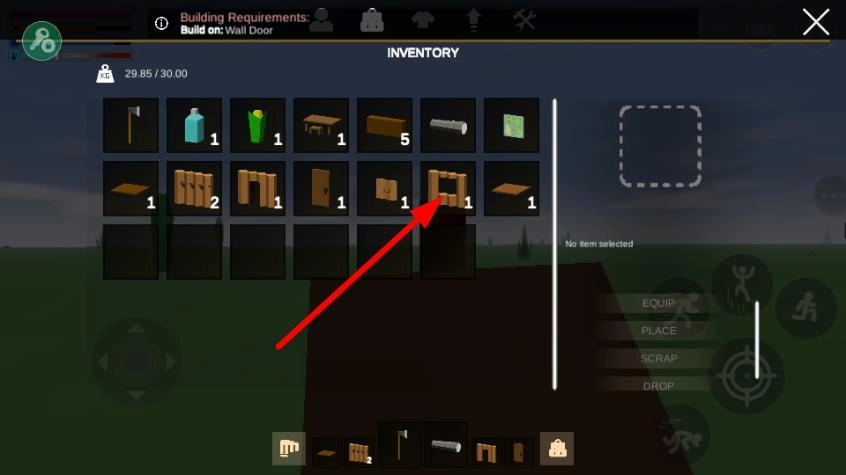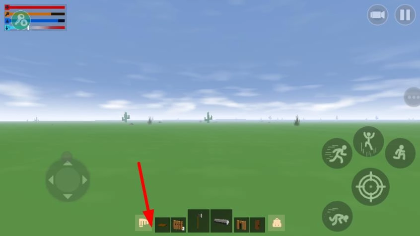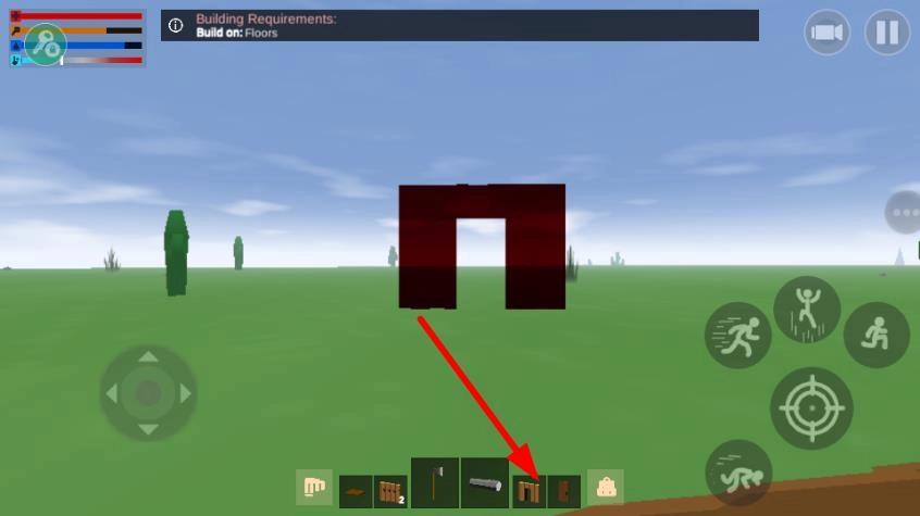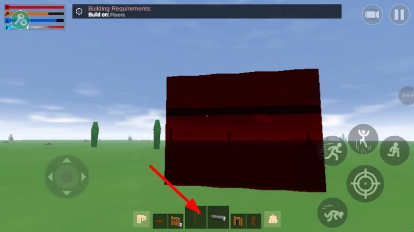 点击箭头所指的建造工具,启动建造模式,选取各类建筑材料来开展建造作业。