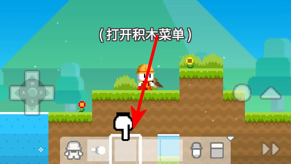 点击游戏界面下方的对应按钮,就能打开积木菜单,接着开展积木的选取操作。
