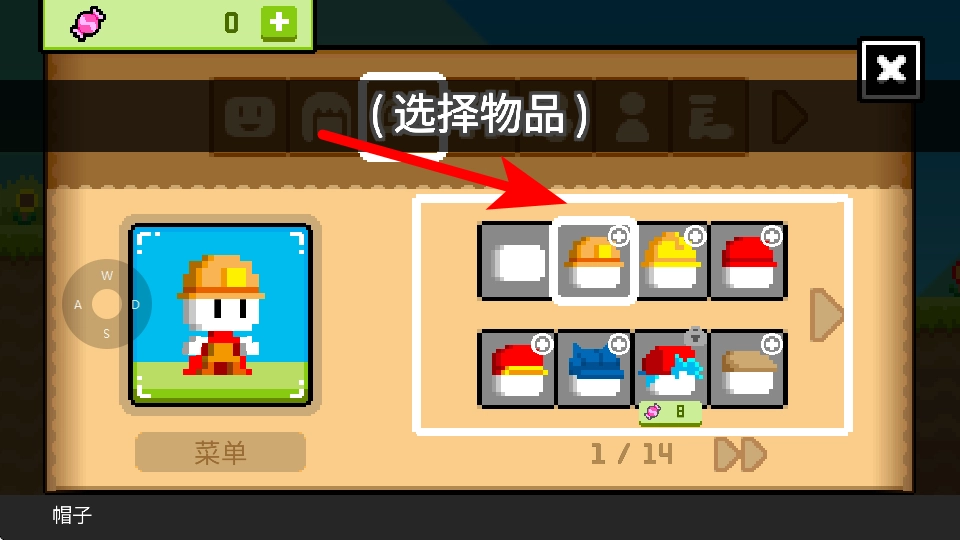 在物品相关的菜单里,你可以对物品进行选择,像挑选不同款式的帽子,以此来变换角色的外观。