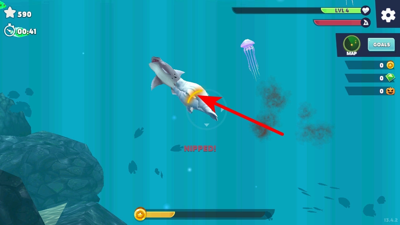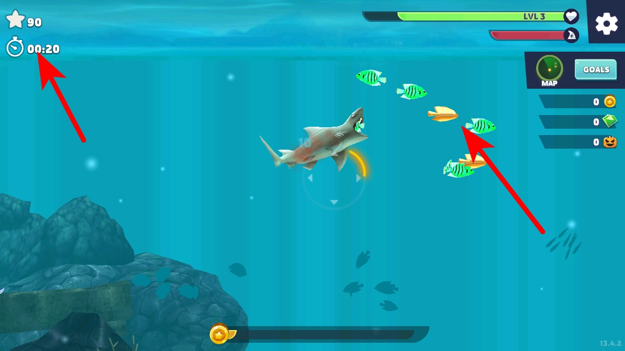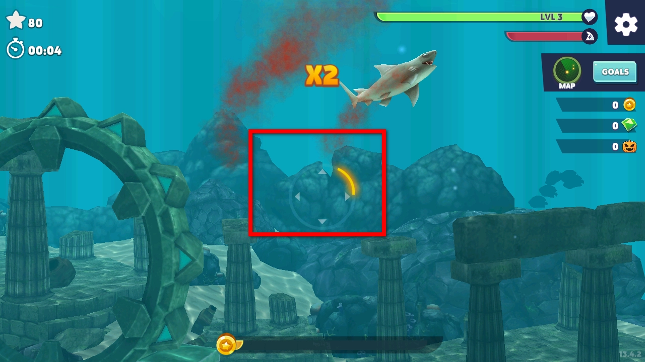 进入游戏后,滑动屏幕就能控制鲨鱼的移动方向,你需要灵活操控它在海洋里穿梭游动。