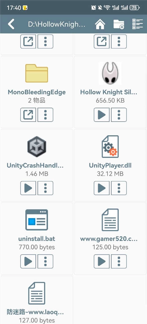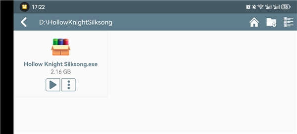 解压完成后返回就能看到游戏目录,找到并选择“HollowKnightSilksong.exe”文件即可。