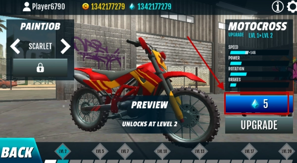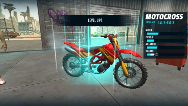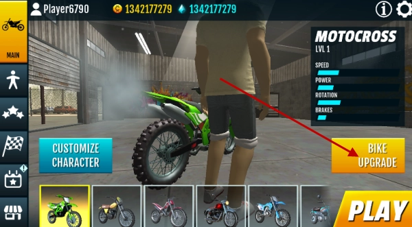 回到主菜单界面,挑选你喜欢的摩托车型号,接着点击右边写着“BIKE UPARADE”的升级选项,就能进入改装系统了。