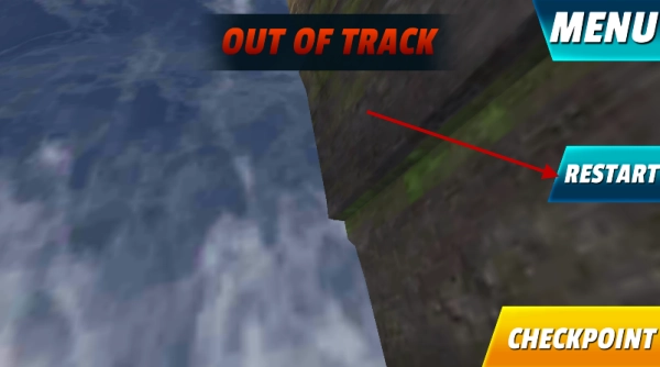 要是不小心掉下悬崖或者翻车失败了,不用着急,只要点击屏幕右侧的RESTART按钮就能重新开启当前关卡,多试几次总能完美通关的。