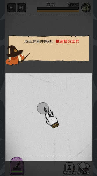 滑动屏幕并拖动手指,可框选指定的己方士兵单位。
