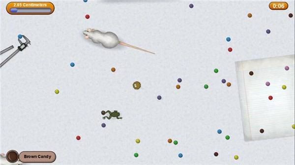 游戏进行时,系统会持续提示可食用的物品。随着吃下的东西逐渐增多,玩家操控的怪物体积会不断增大,场景也会随之变换。因为怪物越来越大,对应的食物自然也不同了,所以需要切换场景,去吃更多新的食物。