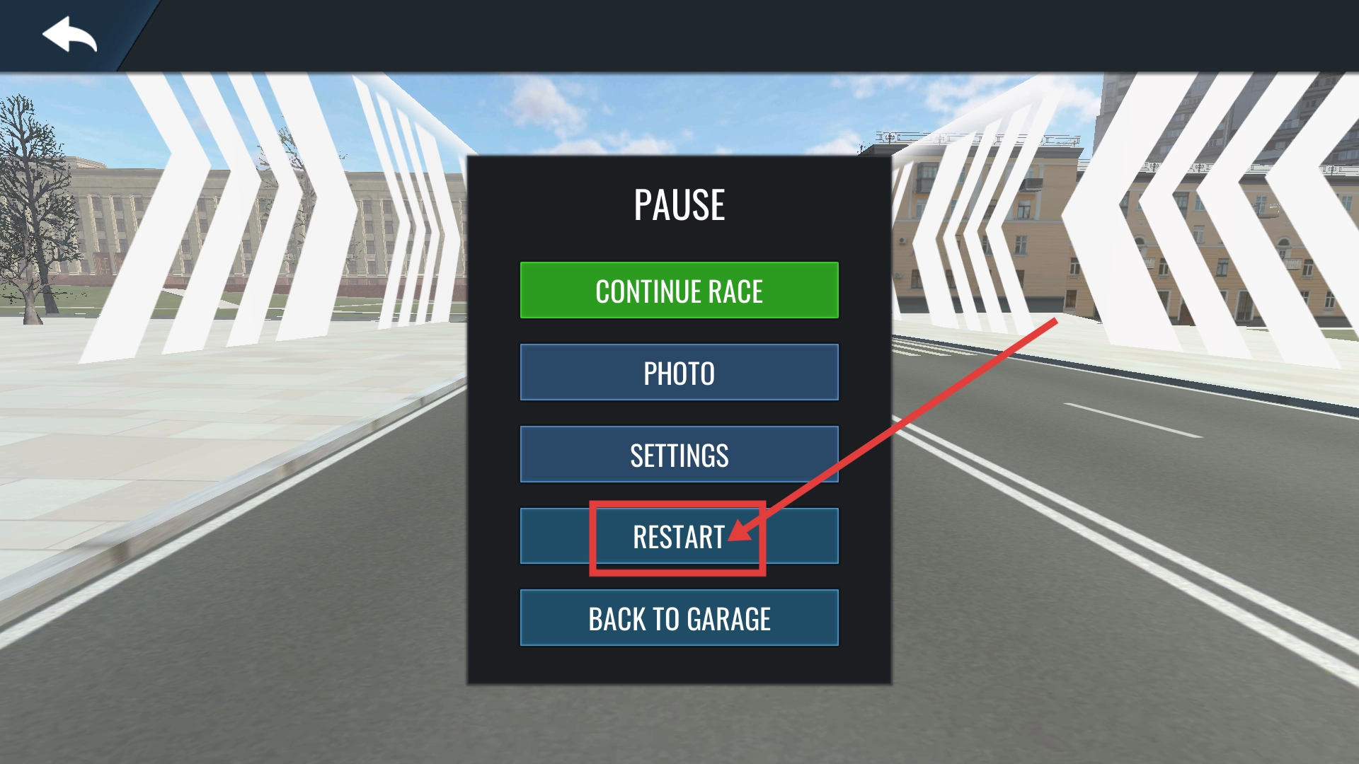要是比赛中出现失误,可在暂停界面点击【RESTART】按钮重新开启比赛,通过快速重启挑战来更新成绩。