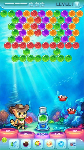 玩家只需留意大炮里彩球的颜色,把它发射到对应颜色的彩球区域,三个同色球凑在一起就能消除。要是打落了所有泡泡却没拿到1星成绩,是没法过关的。赶紧喊上好友,一同踏上奇妙的喵星大陆,尽情享受打泡泡的畅快吧!这款游戏简单好上手,能让玩家感受到无穷的乐趣与挑战。