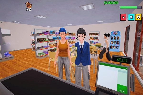 购买成功后,操控角色移动,捡起地上的箱子,开始经营布置店铺。