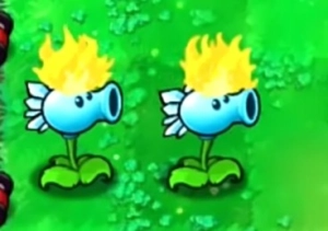 2、火焰寒冰射手:能给寒冰射手的子弹附上火焰效果,对僵尸造成高额伤害,而且其头顶的火焰还具备火炬树桩的功能,可将普通豌豆升级为火焰豌豆,是一种实力强劲的植物。