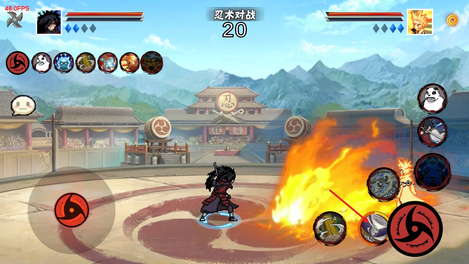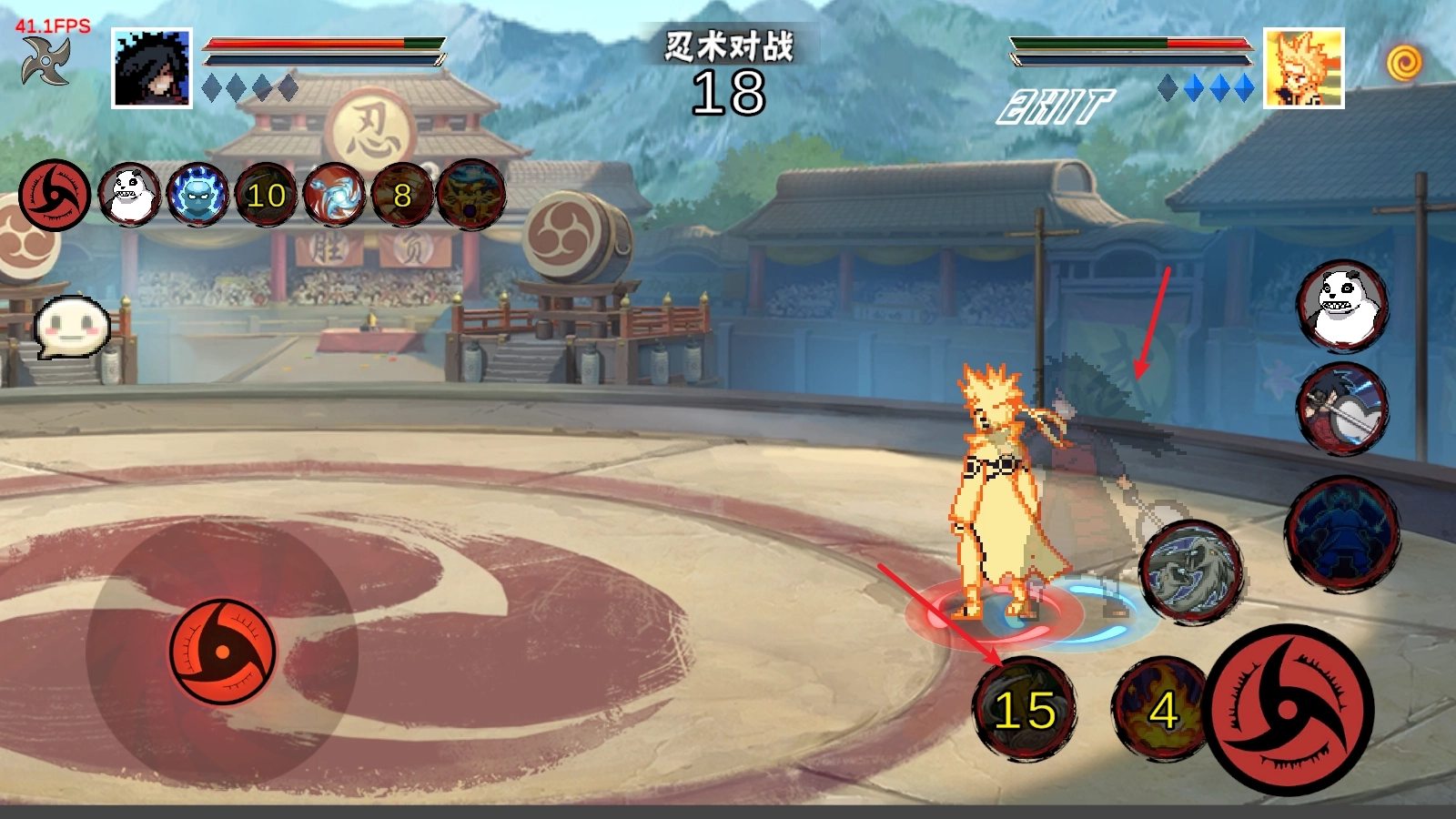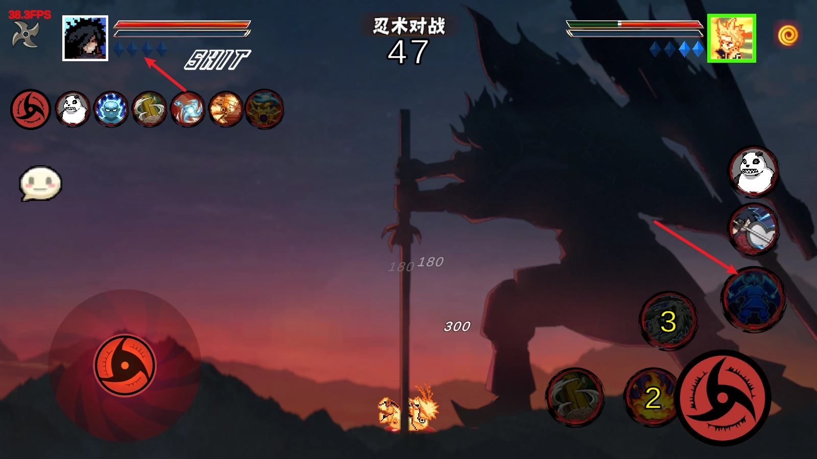 4、每个忍者都有两个小技能和一个奥义技,释放技能后会进入冷却倒计时(部分角色拥有子技能或技能的二段变化)。