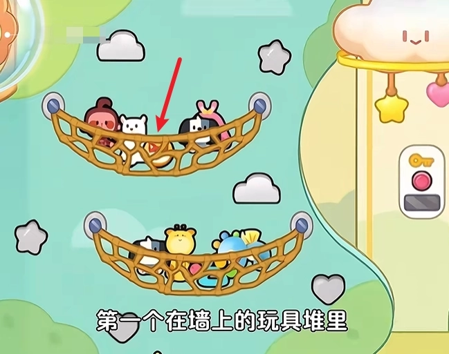 2、第一枚徽章藏在墙边的玩具堆里,只要轻轻移开积木,就能找到它。