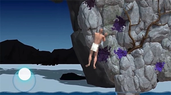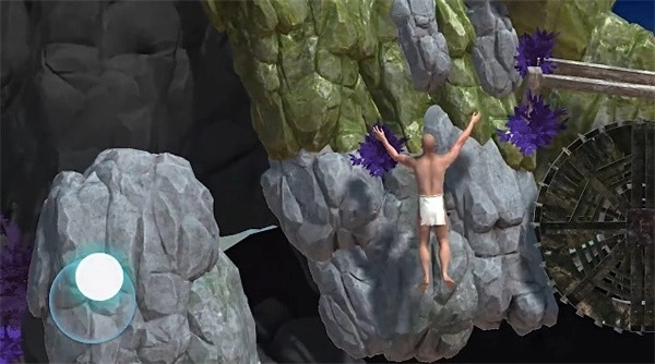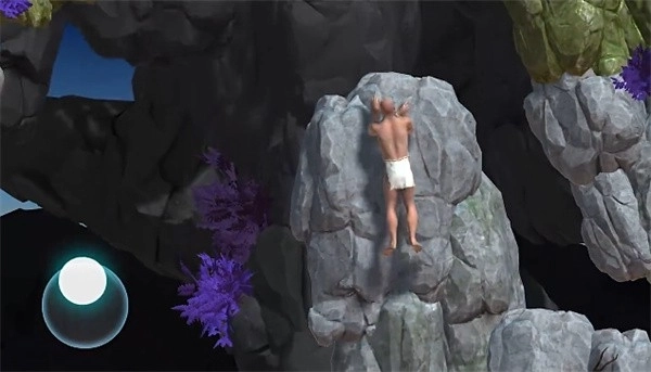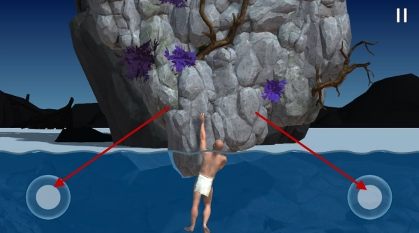2、进入游戏画面后,屏幕左侧的虚拟按键负责操控角色右手的动作,右侧的虚拟按键则对应角色左手的抓握与移动操作;这种双摇杆的设计能够实现左右手的独立控制,从而模拟出真实的攀岩手感。