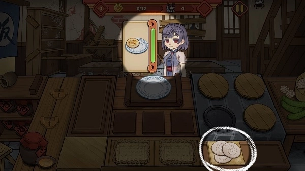 开张之后首要做的,就是掌握美食制作的烹饪技巧。就像图里展示的那样,顾客身旁的图示代表着订单要求,玩家得依据这些订单来完成美食的制作。