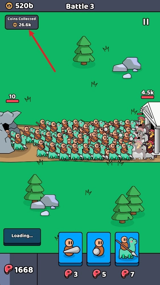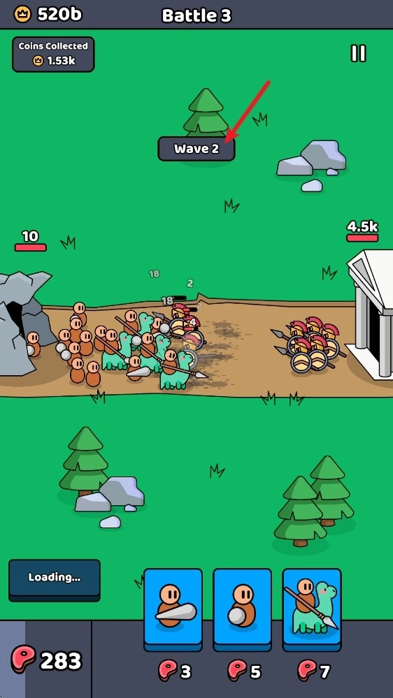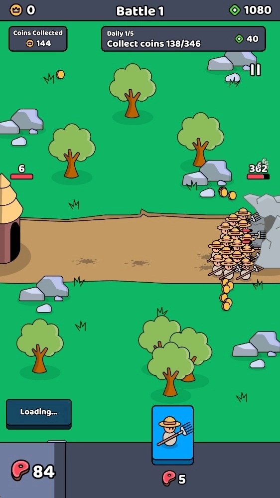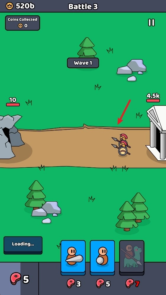 2、随后敌方会开始出兵,等我们储备好足够的食物,就能召唤士兵投入战斗了。
