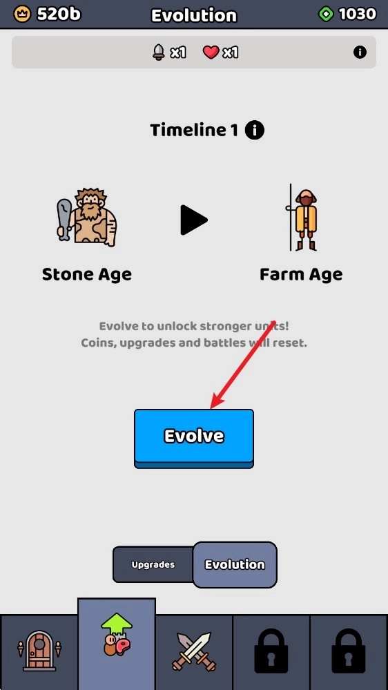4、完成进化后,所有内容都会被重置,我们得重新解锁并升级士兵。