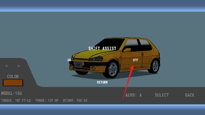 3、进入车辆选择页面后,你可以自由切换车型并修改车辆颜色,打造属于你的赛车风格。
