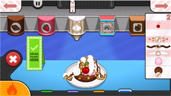 2、制作所有冰激凌时需遵循步骤操作,获得高分就能赢取金币。