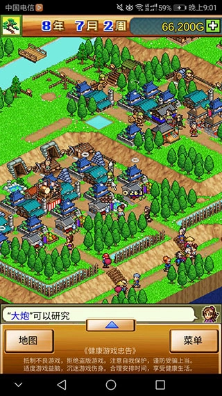 6、水井(加劳动效率,放在木厂、矿场和工坊旁+10+4+2+1),强烈建议木场、矿场、农田旁放一个工坊(这样你的村民才不会为了把原料加工成商品满地图瞎跑)。 7、稻草人(加粮食生长速度,+8+4+2+1,开局5-8个农田即可,后期15个农田以内已经够用了)。 8、并不是商铺的商品越贵越能赚钱,因为村民加工很慢,卖粮、矿、木更赚。商品解锁到同类原料最贵即可,不用卖同时需要两种原料才能加工出来的商品(因为一年也做不了几个)。 9、攻城。 10、攻略方向拿下地图左边3城,就一直往右直到解锁骑兵后,自己拥有4兵种和几只动物,装备不用什么都研究和解锁,10年内,把国王军刷到25级,步兵300,弓200,骑200以上,哪个都能试着打一打。 11、15年内,解锁兵法书拥有8-9个村民参战,步5-600(后面也不用再多,步兵只要能活过第二轮就算够用了),弓300,火药500以上,骑300以上。 12、20年内,除了步兵,怎么加都行。