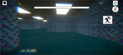 4、进入游戏后画面如图所示,玩家需要寻找各类线索,同时躲避怪物的追击,最终从这个后室场景中成功逃脱。