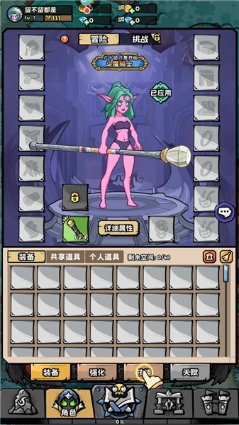 a.装备系统分为冒险装备和挑战装备
