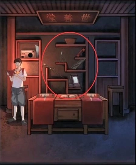 把收音机调频至【39.1】,可获取线索:【倍羽、宫、角、商、倍徵、角、商、角、徵、羽】。接着依照【2354154567】的序列,前往右侧房间弹奏乐器,便能得到【算盘】。之后在该房间的右侧找到【不高兴娃娃】,将两个娃娃一同放入凹槽位置,即可获得【另一个婚契】。