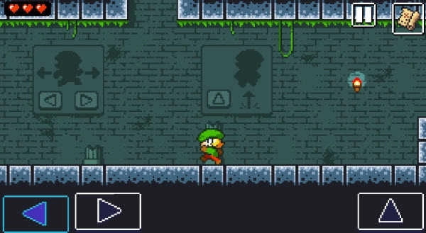 3、屏幕下方三个按键可以操控角色左右移动与跳跃。
