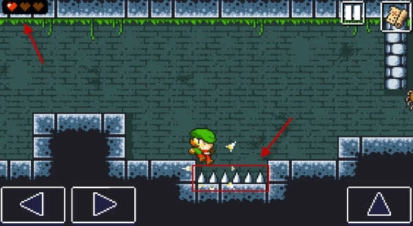 5、要留意地上的陷阱和突然冒出来的怪物,一旦血量耗尽,游戏就结束了。