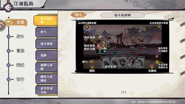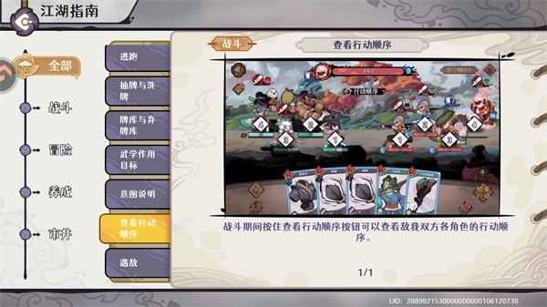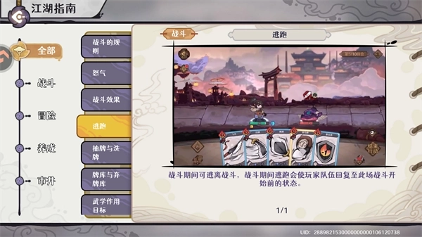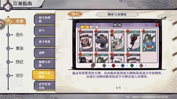 战斗中的牌库由布阵时携带的卡牌与对局内临时获取的卡牌共同组成。玩家在行动阶段使用的武学卡牌,会被移入弃牌库。