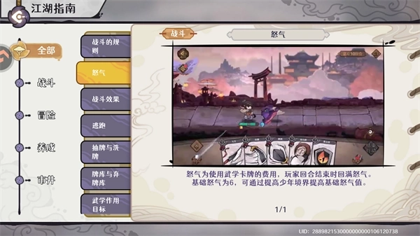 当抽牌机制被触发时,玩家会从牌库中抽取相应数量的武学卡牌加入手牌。若触发抽牌时牌库已无武学卡牌,则会启动洗牌流程——将弃牌库中的所有卡牌打乱顺序后重新归入牌库。武学卡牌的使用需消耗怒气,玩家在回合结束时怒气会回满;初始基础怒气值为6,后续可通过提升少年境界来增加这一基础数值。